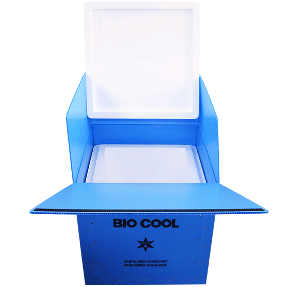 当社製品であるバイオクールは高性能の保冷容器ですが、発泡スチロールの弱点を補うべく、プライタで頑丈な外箔を作り、その中に厚壁の発泡スチロールをはめ込んだものです。