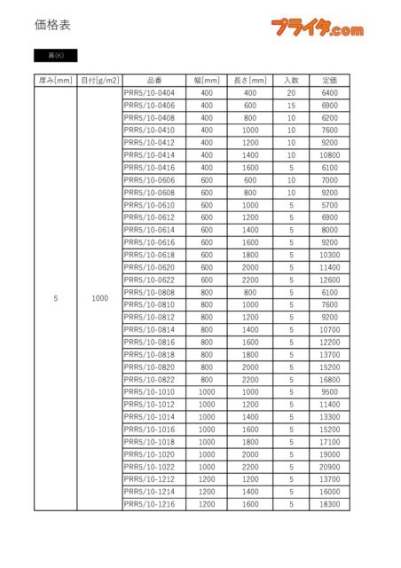 | 幅 (mm) | 長さ (mm) | 入数 (枚) | カラー |