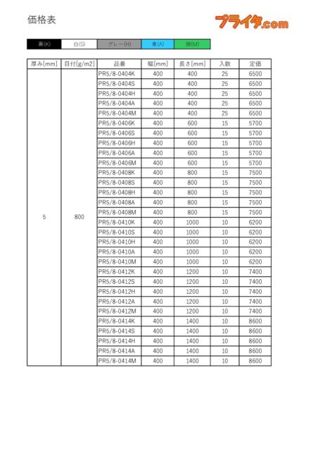 | 幅 (mm) | 長さ (mm) | 入数 (枚) | カラー | ||||
